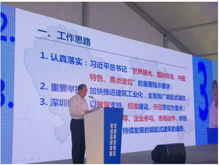 深圳市住房和建設(shè)局黨組書記、局長張學(xué)凡代表深圳市住建局,對參會的領(lǐng)導(dǎo)同仁表示了熱烈的歡迎,并全面介紹了裝配式建筑發(fā)展的“深圳模式”內(nèi)涵。
